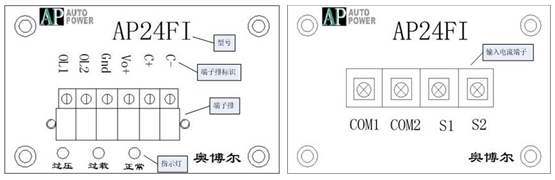 AP2420B:其中 AP系列電流感應電源,24V電壓規格輸出,B表示含24V鉛酸蓄電池充放電管理功能。AP2420B是我公司針對電力系統環網開關柜中等功率應用開發的一款帶鉛酸蓄電池充放電管理的高穩定性電流感應電源,其負載輸出電壓規格為24V,額定輸出功率為20W,充電電壓最大為27.5V,充電限流值為0.8A,充電最大功率為20W,支持取電的最大導線外徑為38mm。該系列電流感應電源采用電勢湖技術和高頻隔離DC/DC變換技術,輔以電源狀態監視以及鉛酸蓄電池充放電管理,配套專用取能互感器,體積小巧,電能轉化效率高,滿足了電網大電流沖擊和負載跳變等多種惡劣情況下的安全供電要求。